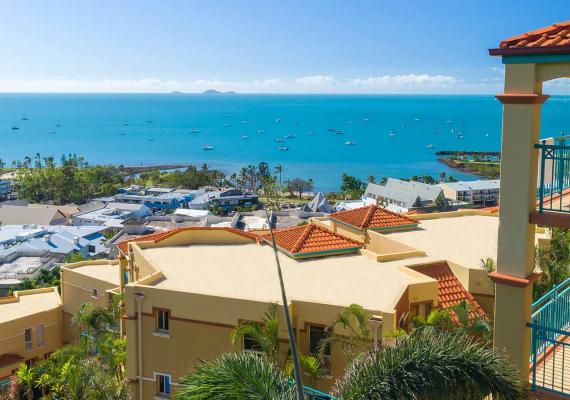 Delightful Tuscany style holiday resort with sweeping views of the Whitsunday Islands. A stroll down the hill to the Airlie village and restaurants. Fabulous 1,2 & 3 bedroom plus penthouse, elegantly appointed apartments and a penthouse, for the guests with unsurpassed water views of the Whitsundays.